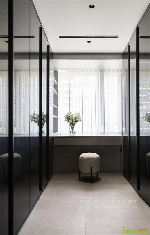 遵循洗漱-換衣梳妝的動線,來安排主衛(wèi)與衣帽間的布局,家裝設(shè)計(jì)將起床后與入睡前的準(zhǔn)備工作集中于這一區(qū)域去解決。