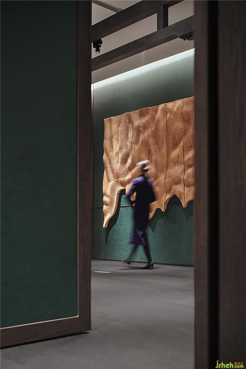 山水之間在于一個“隱”字,樓閣隱于天青煙雨中,虛實隱于秩序變換里,文化的傳承則隱匿于每一處,將空間作為時間的表達載體,賦予每件器物獨特的語言,譬如銀杏花葉的燈,朱紅色的果,紋理錯落有致的房梁....在細節(jié)中窺見歷史真相,此情此景仿佛在千百年前的平行時空真實存在。