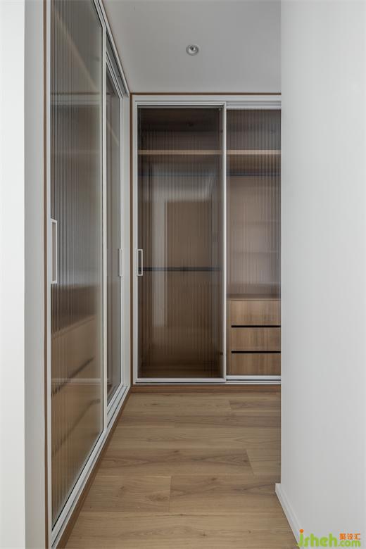 衣帽間設(shè)計(jì)頗具巧思,用極其簡單的線條勾勒出最具靈性的空間。嵌入式的木紋柜體,最大限度地深化了使用空間,天津天霖園裝修設(shè)計(jì)選用長虹玻璃作為衣柜的柜門,保證了防塵效果的同時(shí)擴(kuò)大了視覺的張力。