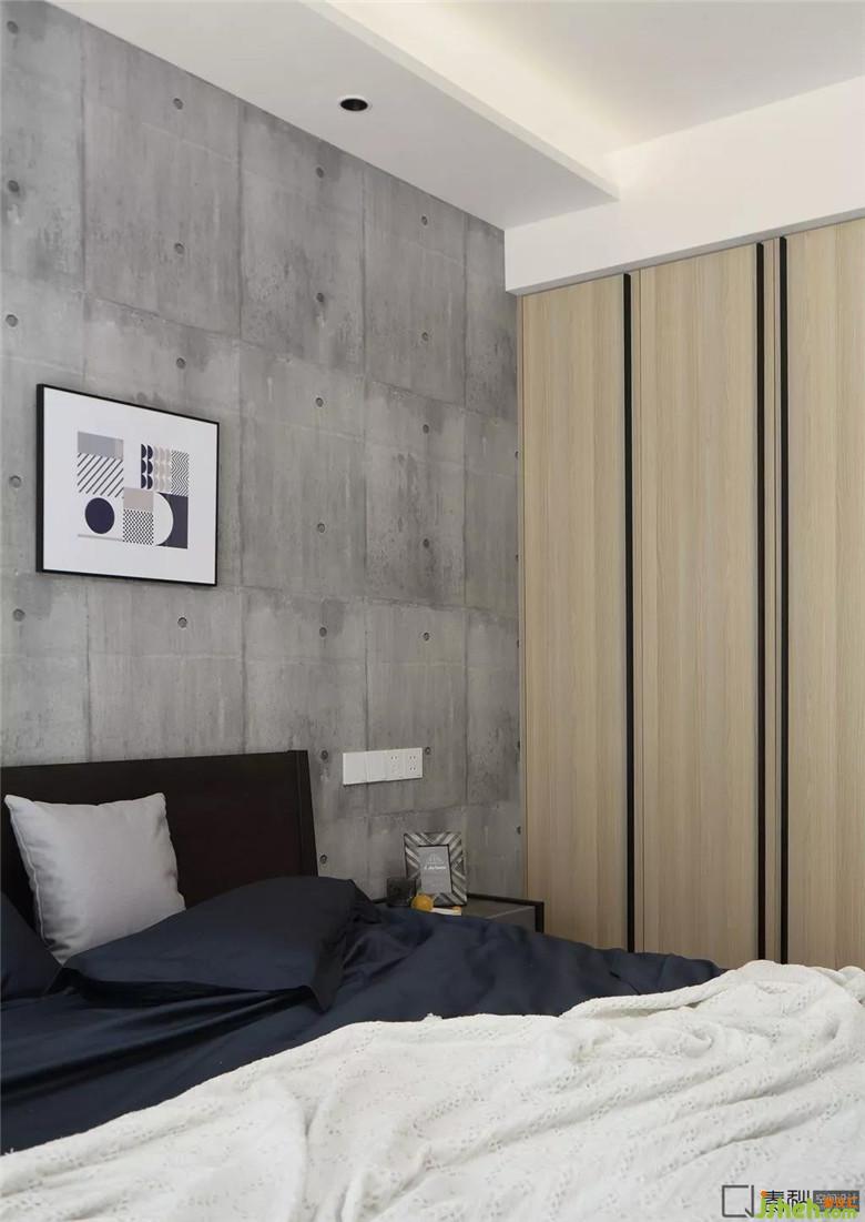客臥設(shè)計(jì)十分簡潔,沒有多余裝飾,床品的色調(diào)和墻色保持一致,室內(nèi)設(shè)計(jì)師為了營造溫馨感和賓至如歸感,用淺色原木色與與其接近的裸色及駝色來打造。特別挑選的掛畫進(jìn)一步提升了空間的品質(zhì)。