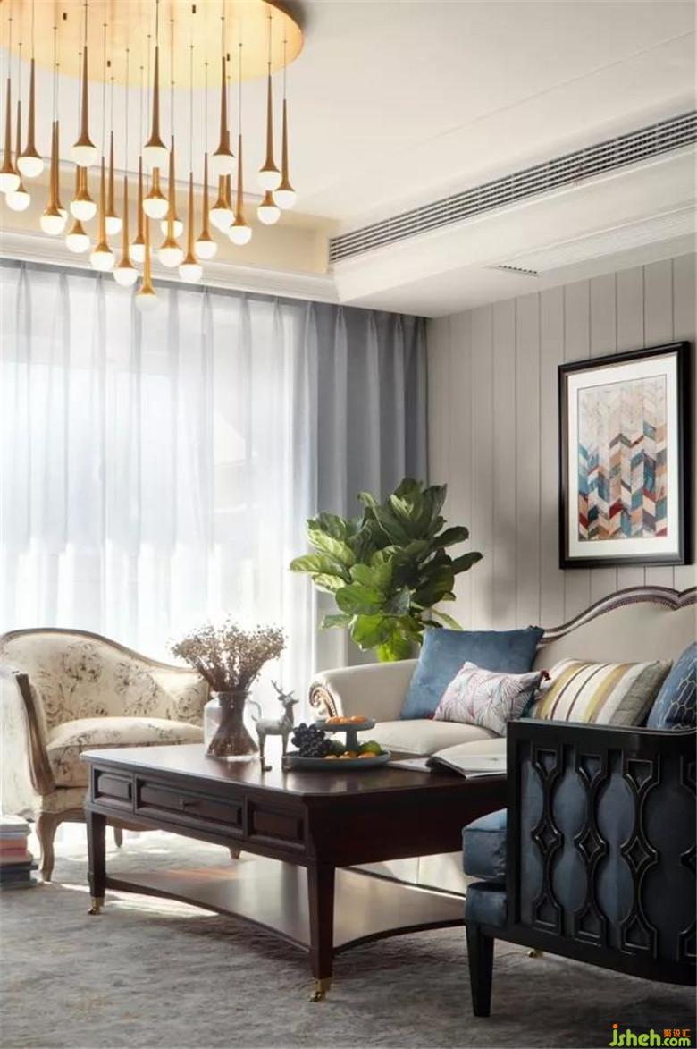 干凈的米色沙發(fā),整體看起來非常溫馨,室內(nèi)設(shè)計(jì)師用乳黃和深藍(lán)色作為跳躍感點(diǎn)綴,溫馨又不失活潑,沉穩(wěn)大氣。