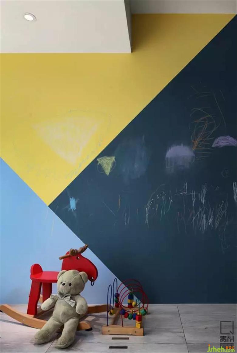 兒童房——室內設計師特意設計了榻榻米和黑板,供孩子們自由玩樂、讓他們盡情釋放天性。由于孩子們的玩具很多,我們特意設計了展示架可以放置小朋友的手工作品以及書籍等。當他們長大時,足夠的空間供他們去學習。