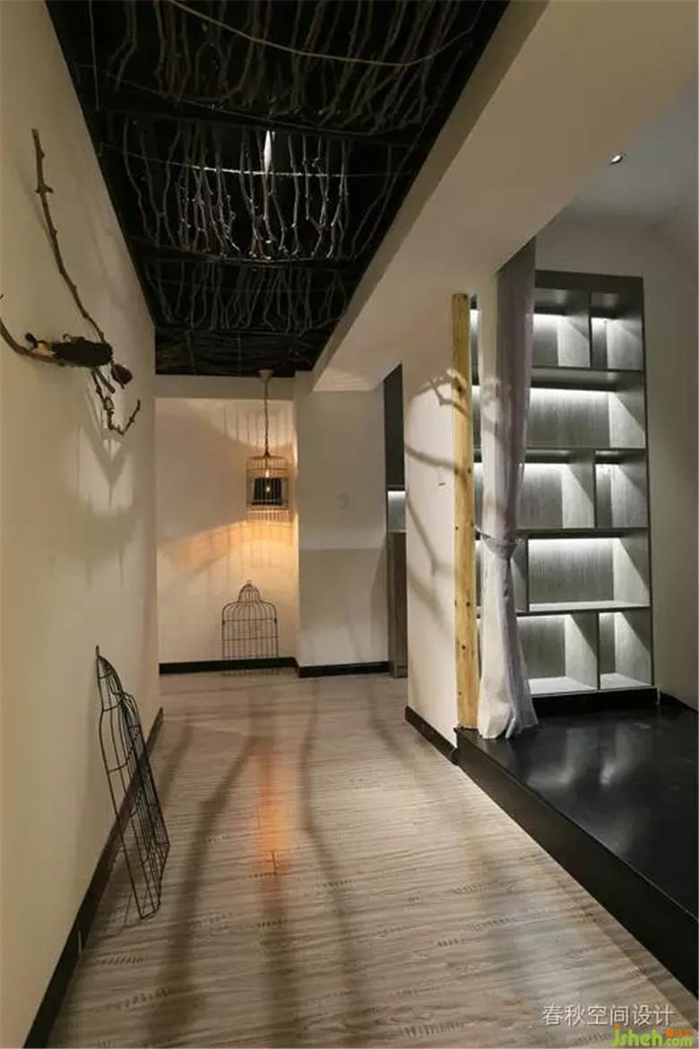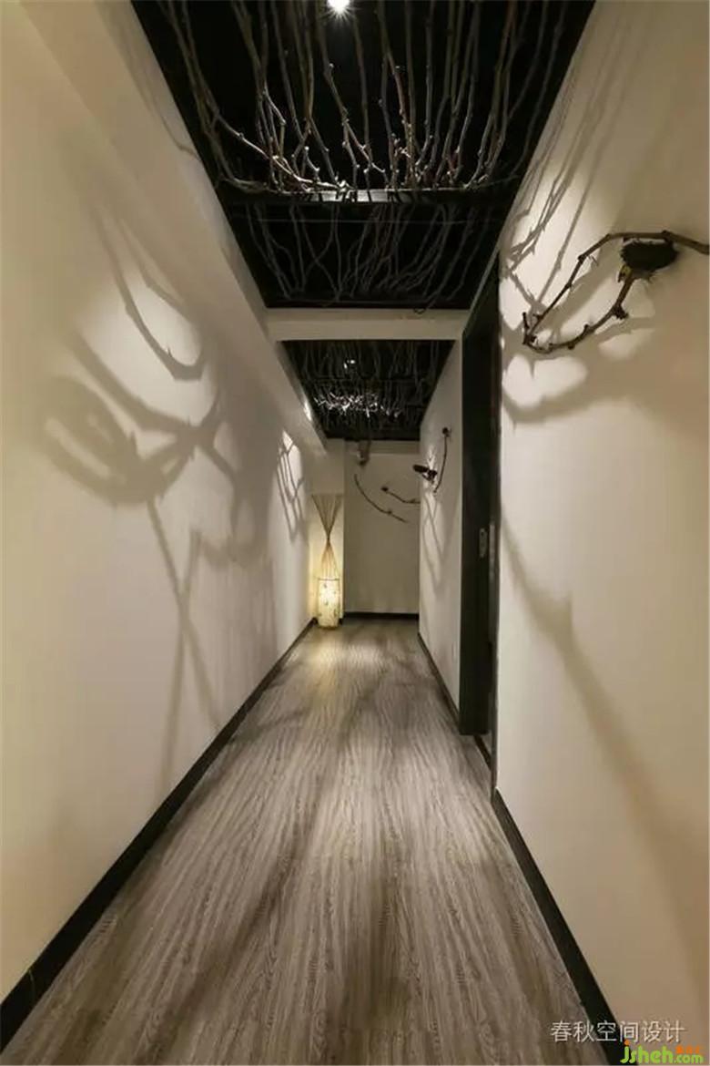 一樓連接至二樓的樓梯走廊,室內設計師在保存中國風古樸美觀的基礎上,體現時尚感和舒適度,穩(wěn)重又不失活潑,寫意又不乏靈秀。