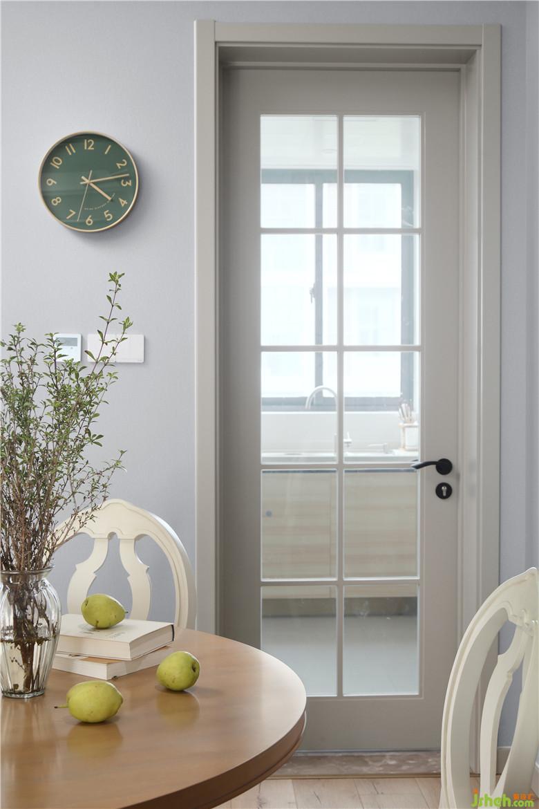 室內(nèi)設(shè)計(jì)師多處留白的墻面是對空間本質(zhì)的呈現(xiàn),帶有落地窗的門,讓外面的景色盡收眼底。