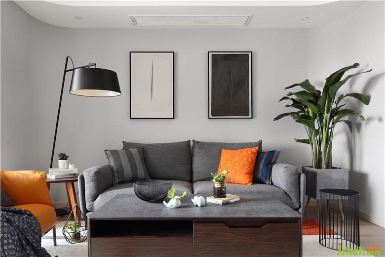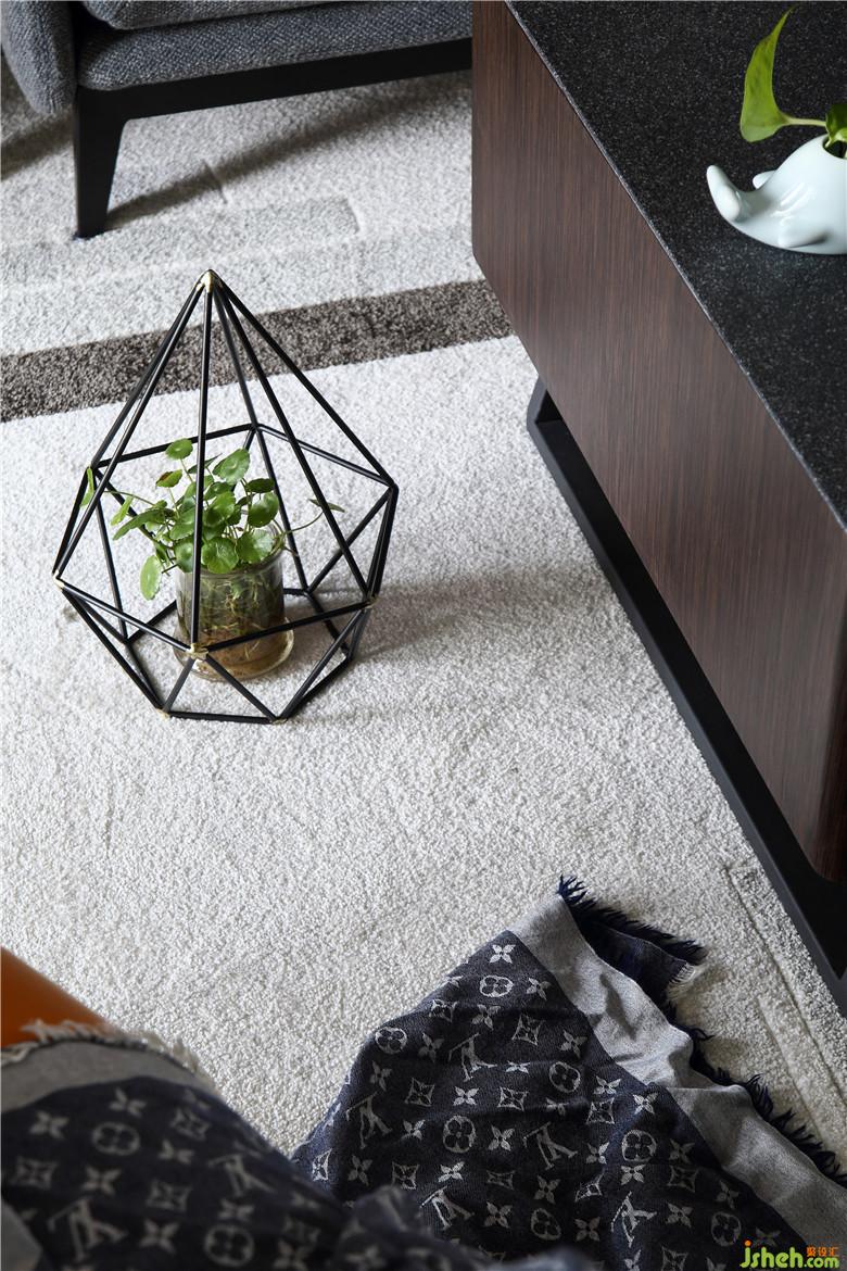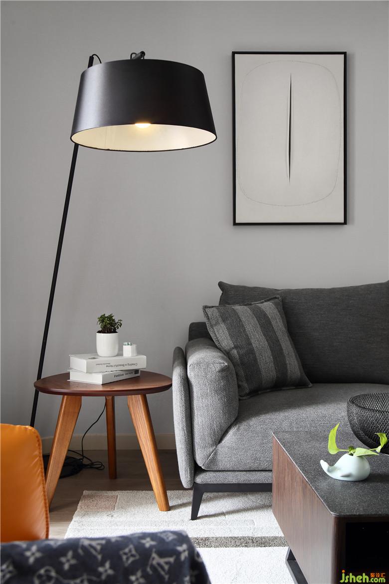 室內設計師搭配深灰色的沙發(fā)、黑色的臺燈與整個空間的色系完美吻合,端莊、大氣、盡顯生活品味。