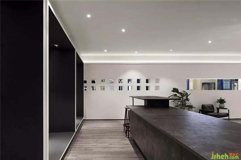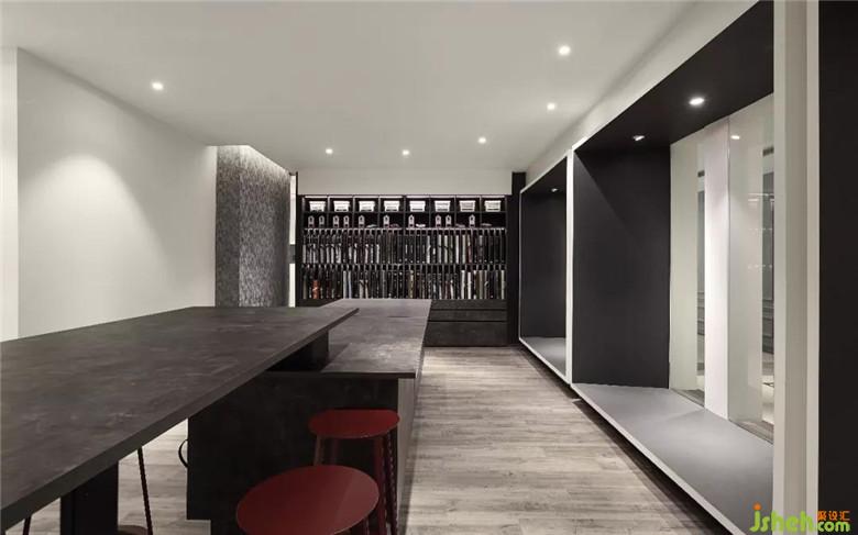 另一方展示柜位于洽談桌一面的上方,不喜低頭找東西的客人可選擇此處,抬頭或轉(zhuǎn)身即可拿到所需樣本,省去了因找樣本而浪費(fèi)時(shí)間或忘記之前的交談內(nèi)容。