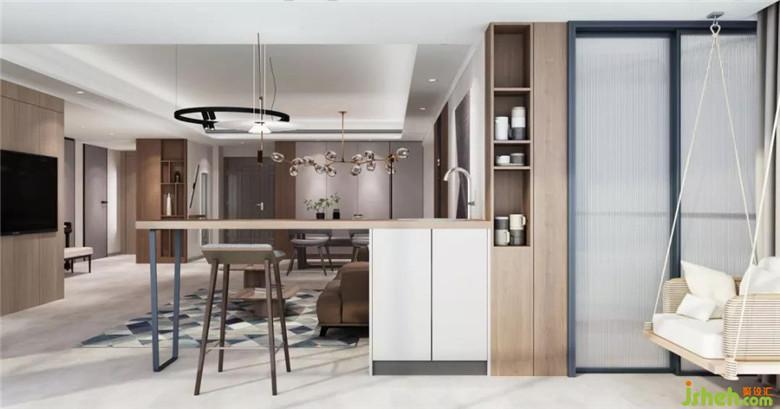 開放式的空間、簡(jiǎn)約的造型,撫去都市里的繁雜。大面積的木飾面將空間氛圍烘托得自然愜意,用暖灰色為主色調(diào),創(chuàng)建溫暖又高級(jí)的視覺感受。裝修公司