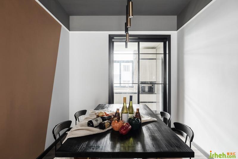 餐廳有一定的局限性,既是動線通道,又是功能區(qū),我們將左右墻面進行了顏色區(qū)分的視覺引導,太妃糖褐色是介于棕褐色與沙漠色之間,黃度減弱,又不至于過紅,是復古中性色的一員,有一種輕熟的優(yōu)雅,并帶有一種視覺溫暖,沉郁醒目的同時也毫不張揚,墻面褐白相搭,緩解了往常的單一疲勞,亦將通道與主墻體進行不動聲色的區(qū)分。