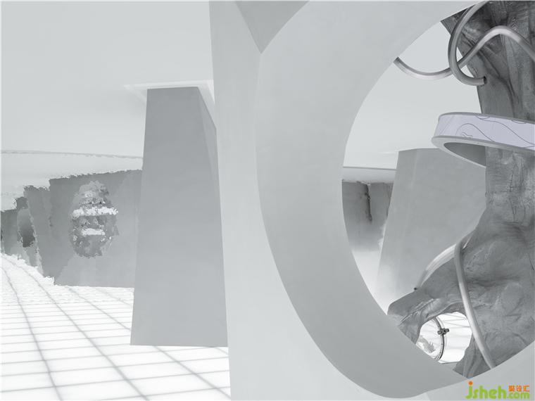 驚喜與意外觀感也隨之而來,一棵穿過天花板的大樹,它究竟要通往何處——或許是另一個平行世界,總是引人無限遐想。美術館設計未來感造型環(huán)繞在樹周圍,自然與科技的結合尤為驚艷,猶似蔓藤與走獸的燈飾裝置纏繞而上,抽象的藝術概念效果即刻達成。