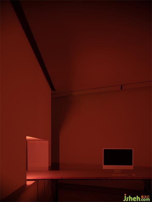 如果說「誰園」是用現(xiàn)代包豪斯的廠房空間重新表達(dá)東方院落的精神性,那在辦公部分,辦公室設(shè)計(jì)則是用現(xiàn)代設(shè)計(jì)手法對(duì)東方意向進(jìn)行更具象的空間轉(zhuǎn)譯,兩者在同一建筑內(nèi)的表達(dá)構(gòu)成有趣的互文關(guān)系。