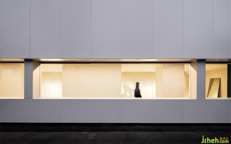 其上下兩部分分別擔(dān)任了多功能展示廳與洽談會(huì)議的功能角色,四周環(huán)繞的開放辦公區(qū)域彰顯現(xiàn)代高效工作氛圍。