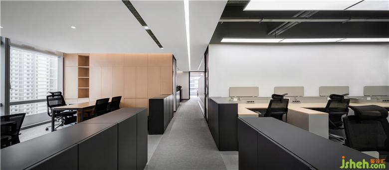 ▼開(kāi)敞辦公區(qū)部分天花保留建筑原始結(jié)構(gòu)