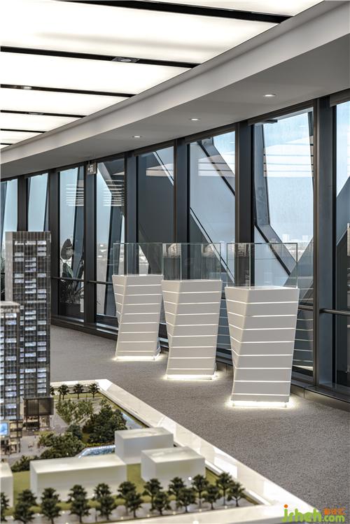 通過不同形式的光構(gòu)成的展示區(qū)域,我們下一站就來到了這個(gè)似乎可以將“光”具像化的空間。在這里,設(shè)計(jì)了五個(gè)通透的圓柱形玻璃體,北京辦公室設(shè)計(jì)頂部配以發(fā)光燈膜,讓光線均勻的灑在每一個(gè)玻璃體內(nèi),形成一種通透的光感。人們在這五個(gè)空間中,可以近距離的觸摸光,感受光。