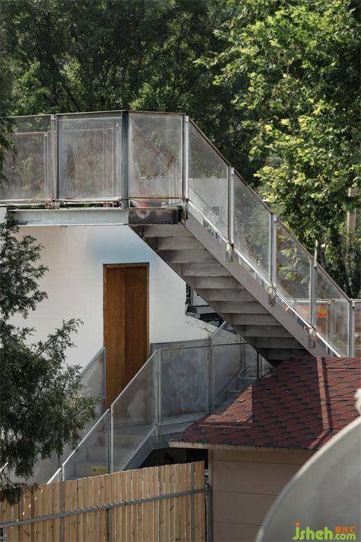 ▼由鐵制樓梯通向樓頂露臺,An iron staircase leads to the rooftop terrace