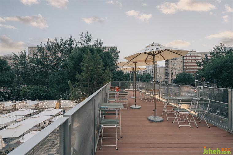 沿建筑外樓梯轉上,抵達樓頂露臺區(qū)域??Х葟d設計利用建筑的頂部空間,隨階梯由私密轉化為開放的活動空間,顧客在此相對舒展,到訪的顧客可以就坐欣賞。