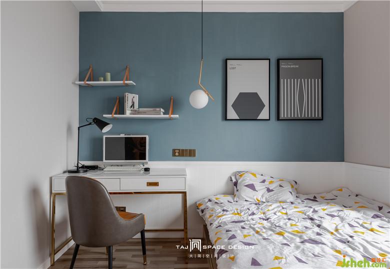 男孩房采用藍(lán)綠色點亮空間,體現(xiàn)了孩童活潑個性的特質(zhì),飾品的點綴穿插為環(huán)境增添幾分玩味。
