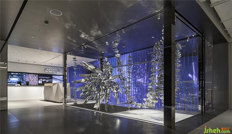 ECCO愛步,一個(gè)來自丹麥的鞋履及皮具品牌,將「使行走成為一種樂趣」作為設(shè)計(jì)宗旨。與以往低調(diào)柔和的品牌印象不同,這家淮海路全球旗艦店是ECCO品牌形象升級(jí)的突破口,設(shè)計(jì)師黨明在設(shè)計(jì)中融入濃烈未來感,運(yùn)用獨(dú)特的藝術(shù)裝置,力圖把技術(shù)、舒適、創(chuàng)新的理念傳遞給世界。