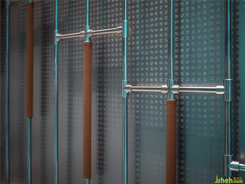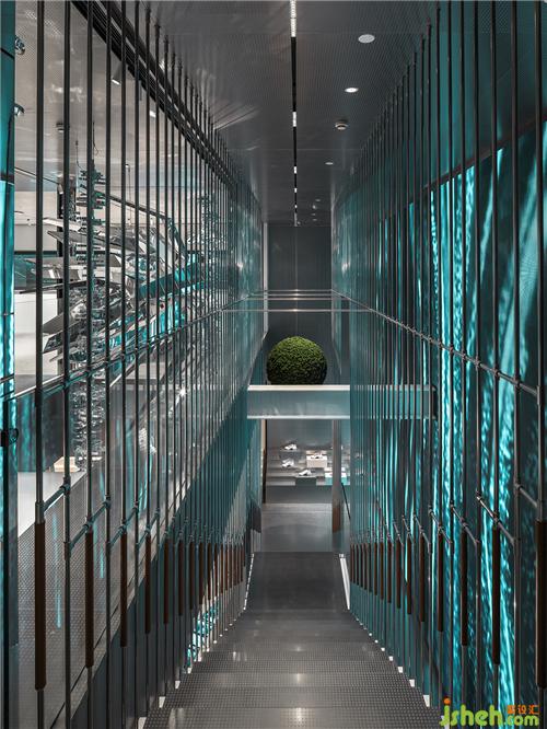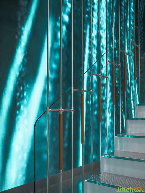 樓梯頂部與側(cè)面綴滿ECCO的金屬蝕刻logo,將品牌印記幻化為一種藝術(shù)符號(hào),低調(diào)而又極富存在感地交織在空間之中。