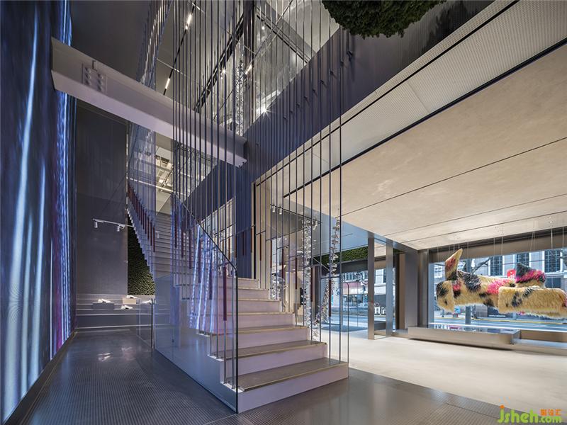 綠植裝置讓這個(gè)場(chǎng)景感受更加環(huán)保,ecco全球旗艦店并非純粹的營(yíng)銷空間,而是提供給城市一個(gè)更開(kāi)放的「客廳」,成為令體驗(yàn)者安全舒適的城市空間。
