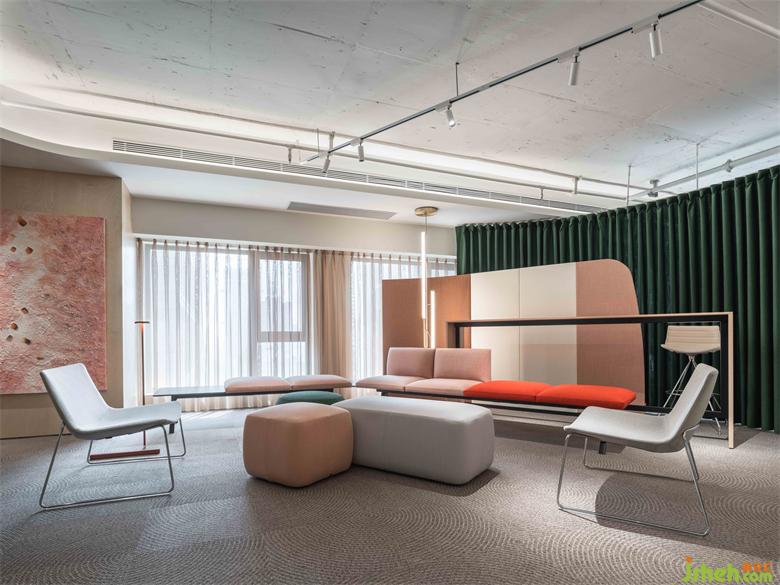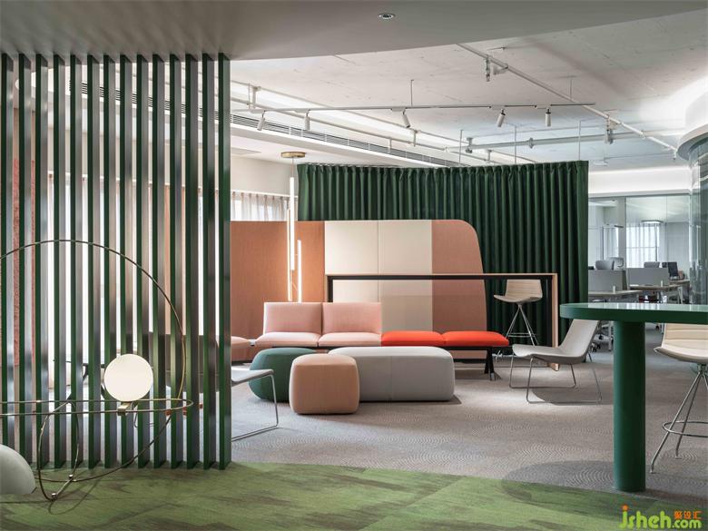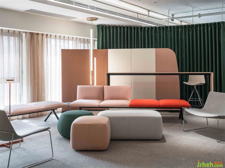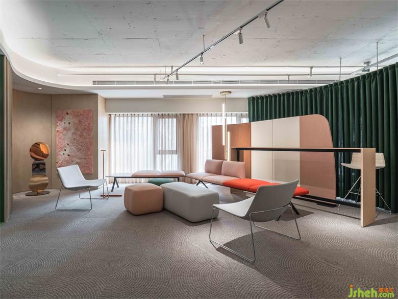 辦公室設(shè)計師受到石頭、水、礫石形態(tài)的啟發(fā),選取具有流動線條、自然塊面感的陳設(shè),使接待區(qū)透露出具有親和力的勃勃生機(jī)。