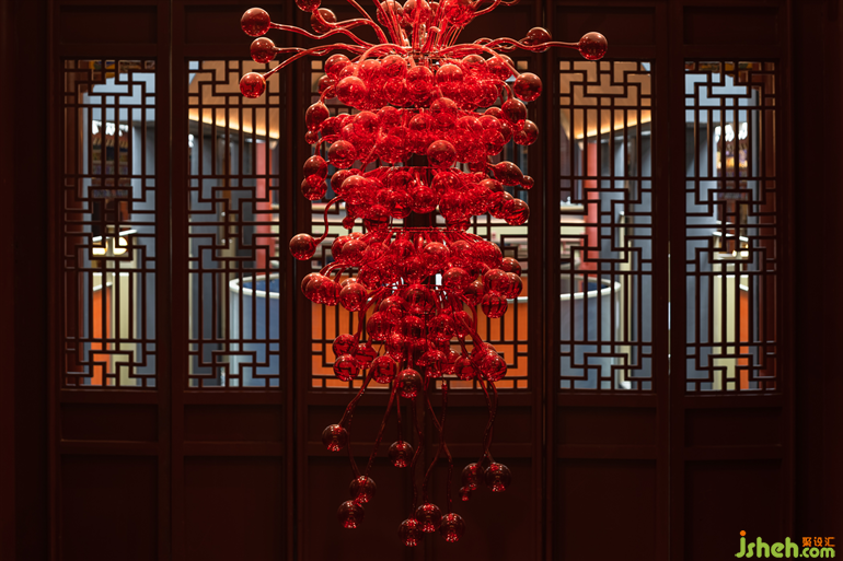 吊燈以當(dāng)代藝術(shù)的姿態(tài),沖破了傳統(tǒng)的束縛,融入傳統(tǒng)?;疱伒暝O(shè)計(jì)空間用色彩訴諸著情感,用幾何控制著理性,擺脫歷史的復(fù)雜性,與自然、古典、中式對(duì)話。