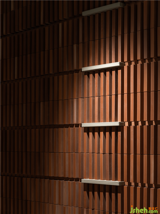 紅山設計將上海的傳統(tǒng)元素重新調配構成后,融入了空間中。兩側的轉腳墻采用垂直的紅磚和小型的橫向皮革磚,創(chuàng)造出對比的紋理,散發(fā)出上海的魅力。