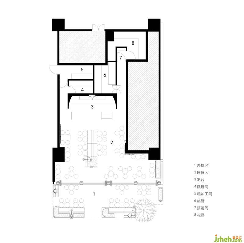 項目根絕地理位置的條件,伴隨著感性的光線,體驗過渡分成兩個時間階段。當(dāng)陽光透過周圍建筑空隙射下流動光影體驗,日光移動下,人和食物在環(huán)境流動的感受,透出精致、散漫、復(fù)古味道的休閑時光,感受陽光投射下的自由。