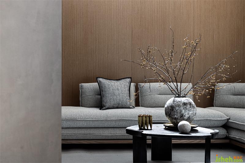 原石打磨穿制的藝術(shù)品掛件,與墻面的留白壁面相得映彰,樣板房設(shè)計黑色、白色、胡桃木色傳遞出溫暖的質(zhì)感,有一瞬間總會憶起過往漫漫的歲月長河。