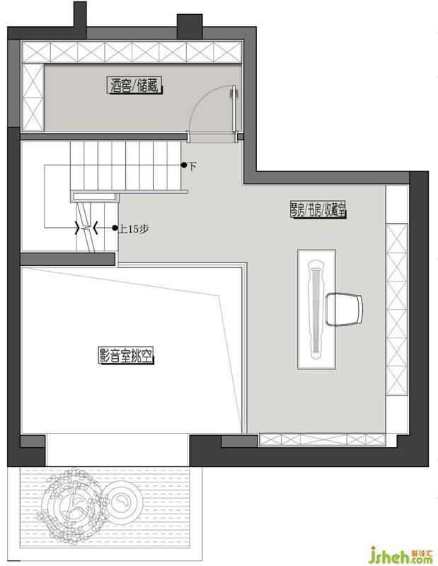 夾層作為閑適空間的延續(xù),樣板房設計設置半放式書房于此,可開可合,相對獨立又相對開放,輔以白梅的傲立姿態(tài),空間開闊有致,尺度豐盈,給居住者足夠的思考探尋與秩序生活。