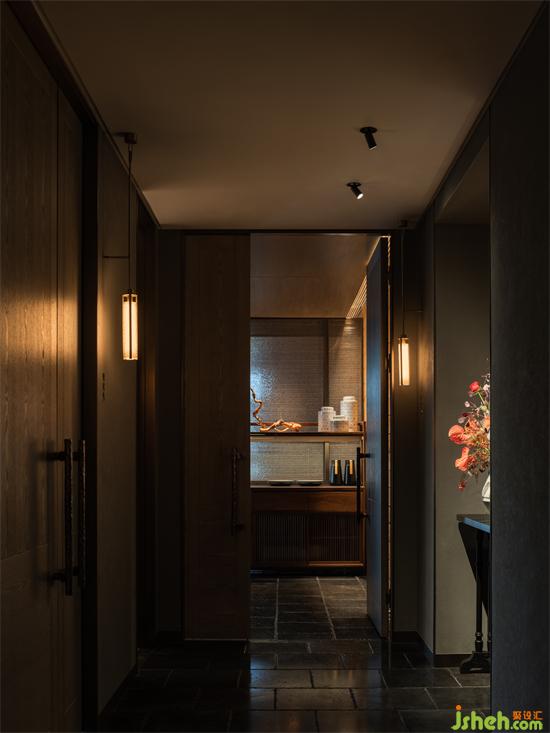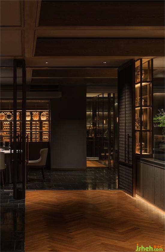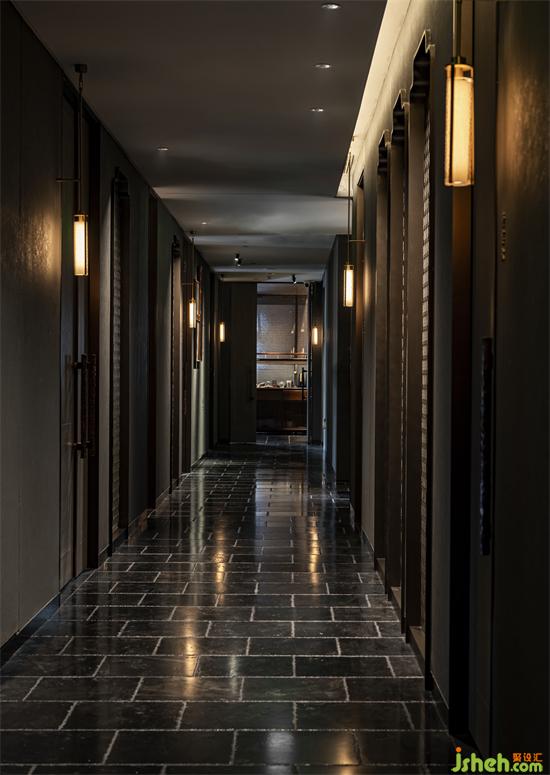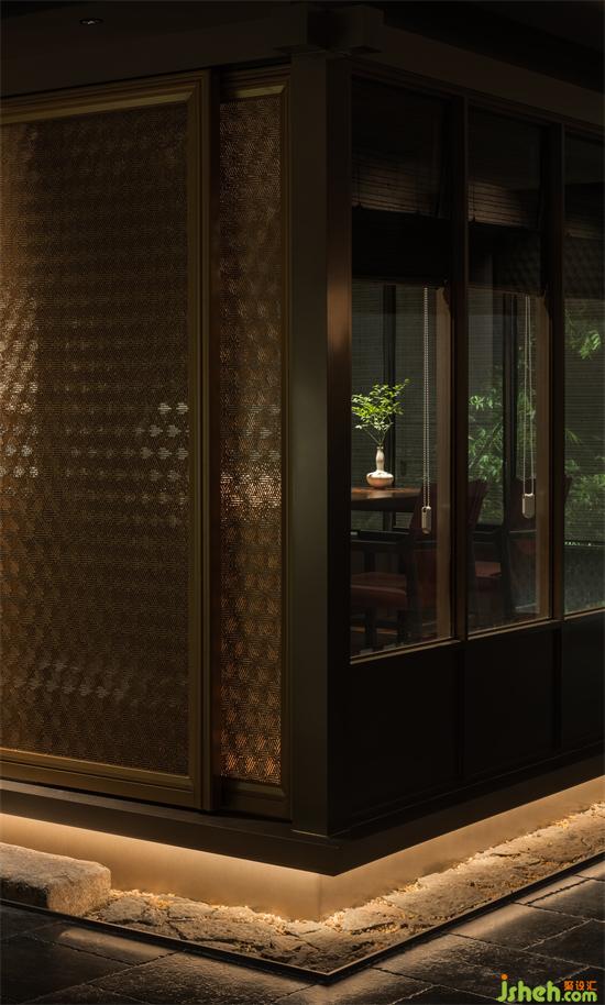 走廊處狹長形的縫隙空間被景觀占據(jù),食客漫步時(shí),落座包廂時(shí),可窺山石松翠,龍吟九品餐廳設(shè)計(jì)極少面積的景觀滿足多個(gè)包廂的視野需求,移步換景,鬧處尋幽。