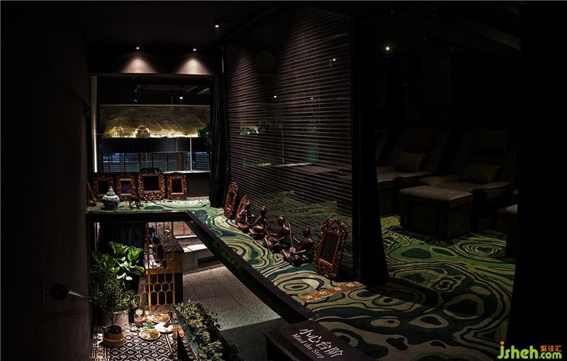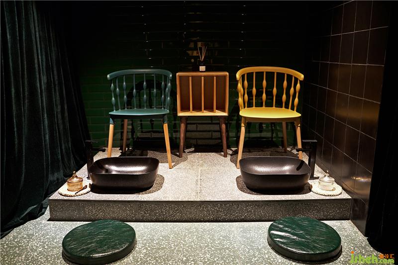 二樓,設(shè)計(jì)師在平衡空間關(guān)系時(shí)利用鋼簾網(wǎng)和活動(dòng)簾作隔斷,分隔出隨意陳列位,定制水波紋圖案手工地毯上展示泰國(guó)本土淘回的手工藝品,提升空間調(diào)性之余降低樓梯的局促感。足部按摩時(shí)消音的包裹式設(shè)計(jì)讓顧客快速進(jìn)入深度舒緩,達(dá)到休息的目的。
