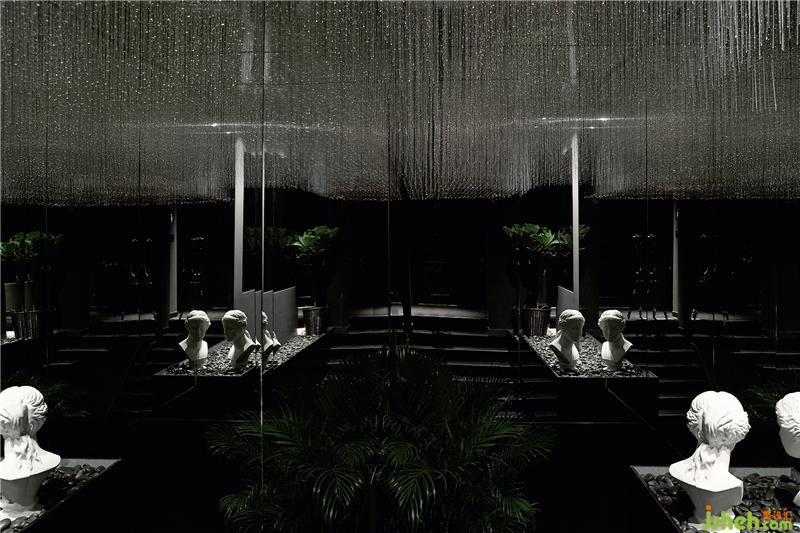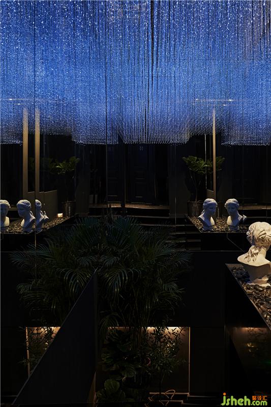 三樓大約117平方米,在有限空間內(nèi)規(guī)劃設(shè)計(jì)出了3個(gè)Massage空間和2個(gè)Spa主題間。從二樓樓梯轉(zhuǎn)彎上三樓,在原有過道基礎(chǔ)上故意加大樓梯空間,營(yíng)造光纖藝術(shù)裝置,抬頭可見整個(gè)天花和墻面鏡子的延伸,慢速呼吸的光絲燈在鏡子錯(cuò)覺魔術(shù)下虛化視神經(jīng),從而達(dá)到接近放空狀態(tài),如置身夢(mèng)境般。