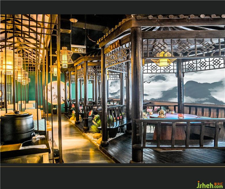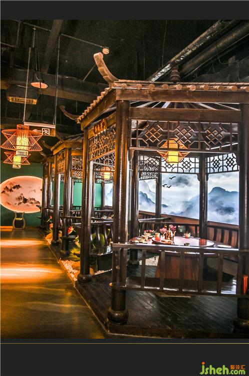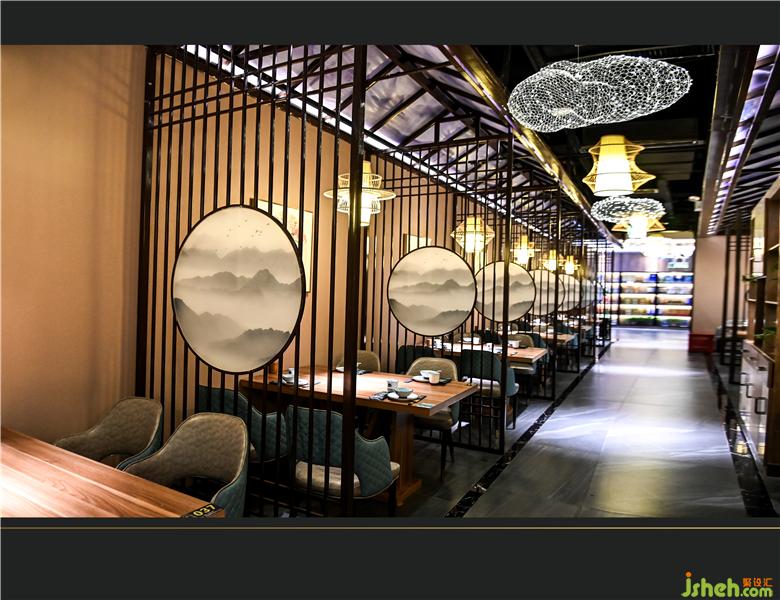 東方審美的高級(jí)感在隔斷上大有講究,雅間用水墨丹青映襯的屏風(fēng)隔開,既將空間區(qū)域劃分開來(lái),又保證了空間的視覺寬敞感,輕薄而不占地面面積。整體上儒雅而嫻靜,含蓄而深美,一種悠然自得蕩然心間。餐廳設(shè)計(jì)