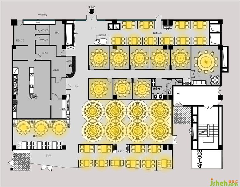 包廂過(guò)道燈上作畫,畫中有景,水墨燈光,曳致生輝,壁畫主題分明,斑斕中窺得一絲祥和。包廂華燈映射到墻上的山水畫,靜謐而溫和,莊重中透著一絲素雅。餐廳設(shè)計(jì)