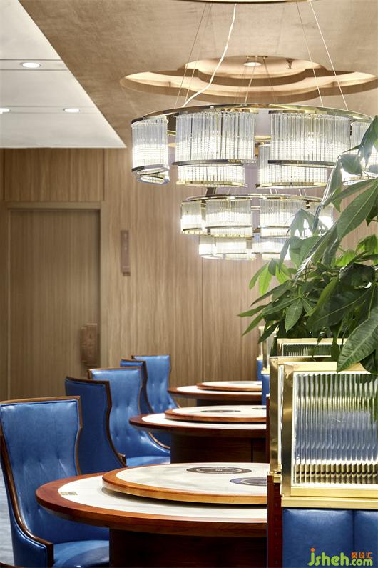 圓弧卡座區(qū)旁的裝飾,是具有川西文化的古建筑屋頂;四人卡座區(qū),是帶有中式文化的“南山翁”古風(fēng)吊燈;餐廳設(shè)計(jì)如波浪般的水晶吊飾,是孕育南京文化的秦淮河在蕩漾。這些,都是用符號(hào)構(gòu)成的文化屬性,設(shè)計(jì)者將這些具象的實(shí)體提煉變異,轉(zhuǎn)化為空間中的抽象表達(dá),凝練成設(shè)計(jì)語(yǔ)言。在展現(xiàn)新概念川菜的同時(shí)融入南京地域文化,體現(xiàn)“南山翁”的品牌在文化傳承的時(shí)間長(zhǎng)河里,屹立不倒,“壽比南山”。