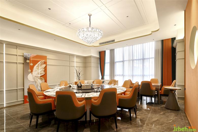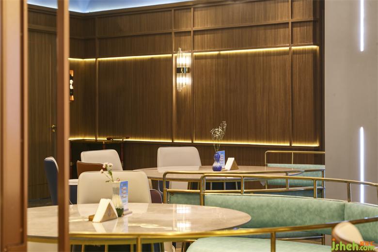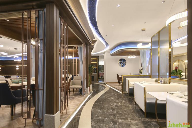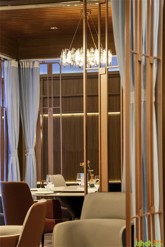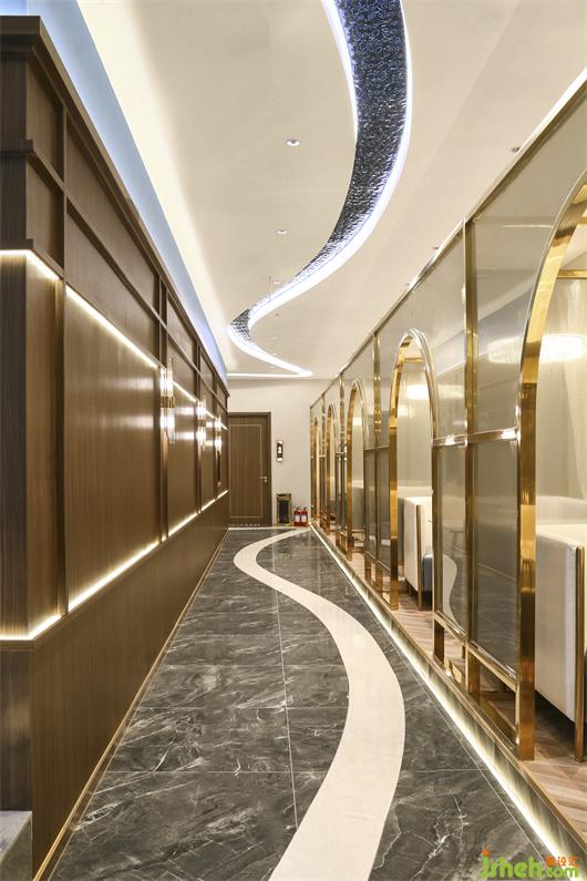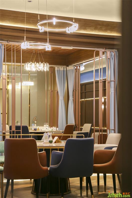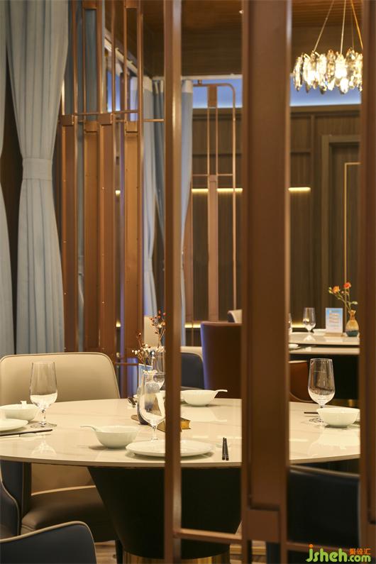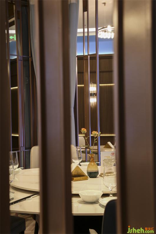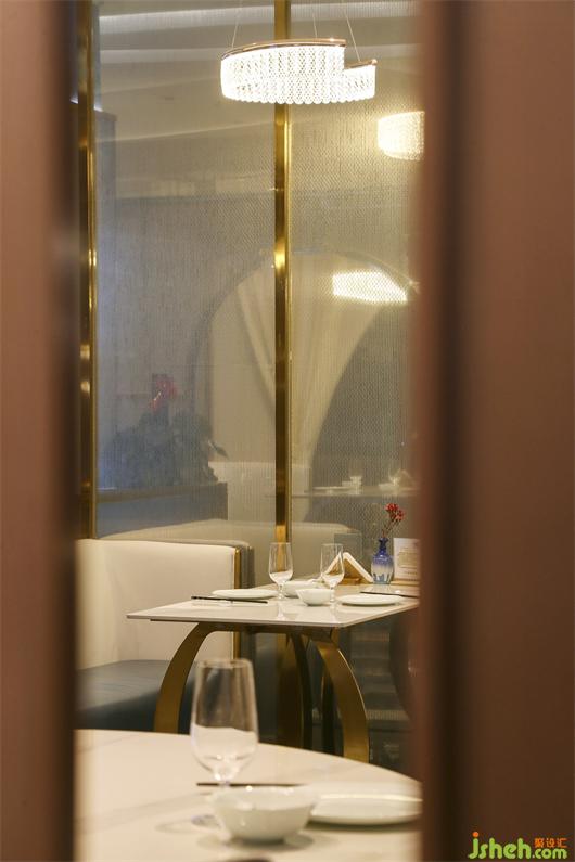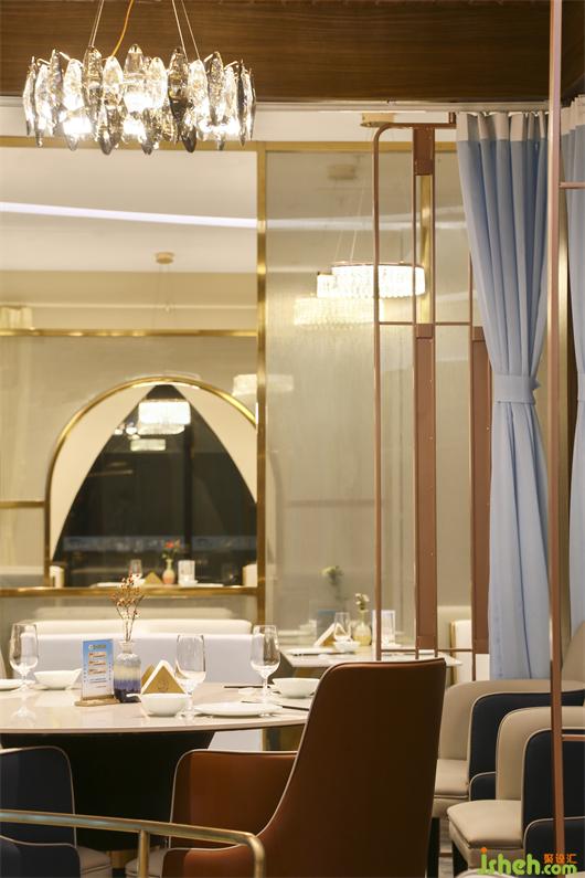 海鮮餐廳設(shè)計(jì)空間中的藝術(shù)屏風(fēng)用黃銅混搭藝術(shù)玻璃,劃分出每一個半包空間,承托著主空間的意境。同時,灰色大理石地磚,木質(zhì)的裝飾,白色餐桌等,這些裝飾也呈現(xiàn)出濃郁東方情調(diào)的輕奢之感!
