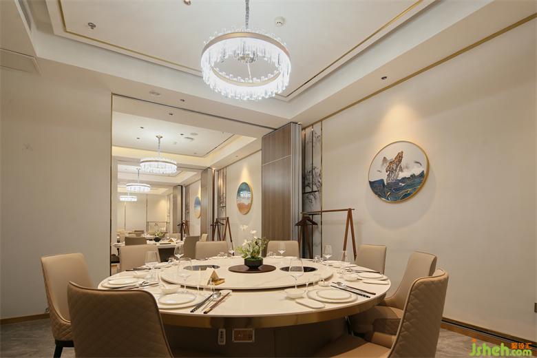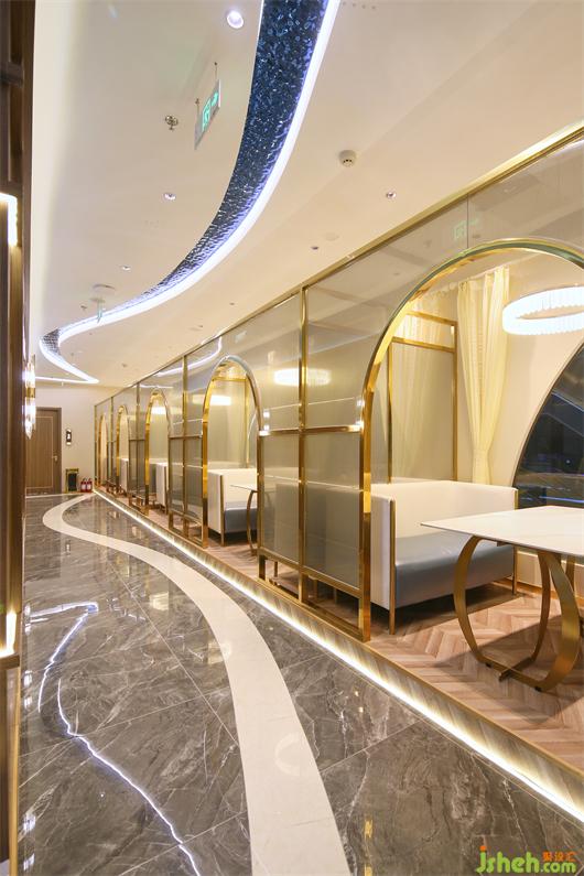 在海韻鮮風(fēng)空間景觀里,深海與大陸的交匯被巧妙地呈現(xiàn)出來。海鮮餐廳設(shè)計(jì)空間以海洋元素為本,又以人文氣息與空間藝術(shù)為底蘊(yùn),在造型上以垂釣式的吊燈為主,輔以射燈或筒燈等,營造一方層次分明的“光彩”空間,為空間注入輕盈明亮的氛圍感。豐富的紋理傳遞出細(xì)膩的質(zhì)感,讓空間于細(xì)微處熠熠生輝。