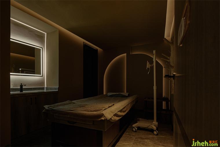 大片的花海之下,映襯著無規(guī)則的燈帶大門。養(yǎng)生會所設(shè)計以光影為敘述語言,在橫向通透,縱向通達(dá)的空間里,通過光影渲染給空間注入力量與生命靈性,創(chuàng)造出新的生機(jī)。