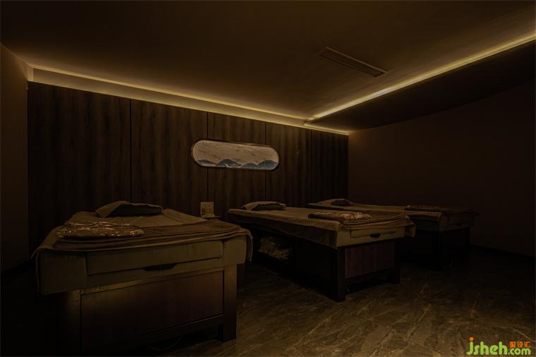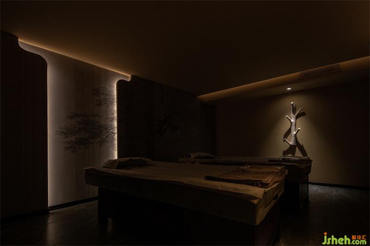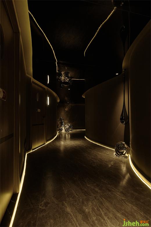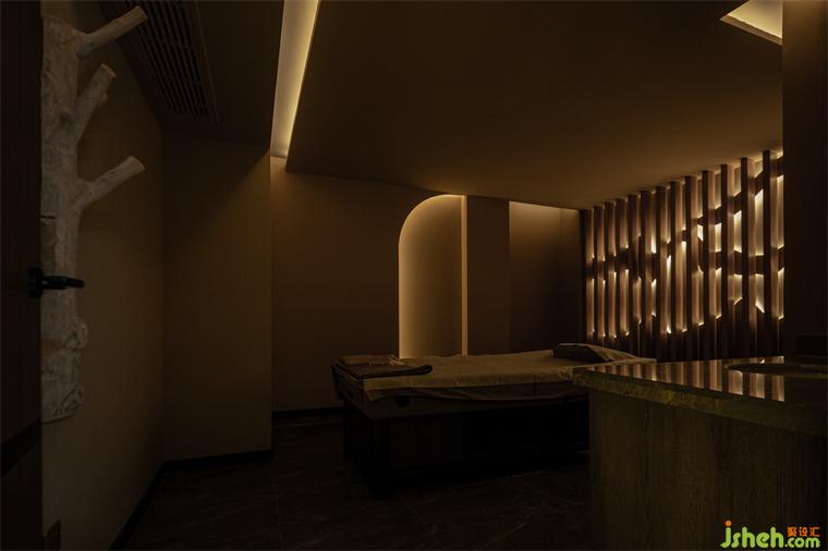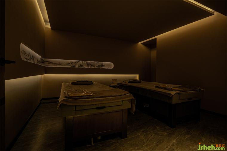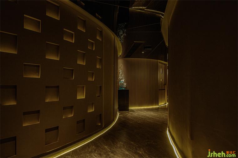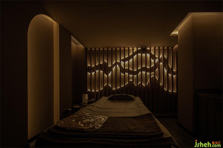 燈光是空間藝術(shù)氛圍的調(diào)節(jié)師。在整個室內(nèi)的主體色為昏暗的大地色環(huán)境中盡顯純粹而沉靜。特別是燈光的投射與不同位置的藝術(shù)裝置鋪陳相結(jié)合的關(guān)系,比如與頂部的鏡面相遇,養(yǎng)生會所設(shè)計(jì)讓整個空間脫離了沉悶,令空間無限延展,孕育出別樣的可能;利用邊角過渡空間塑造的置景,巧而精致:電子屏竹墻、地面的大理石、意境雕刻的水滴與質(zhì)感的海浪……無一不是刻意而為,卻呈現(xiàn)著自然和諧之美。