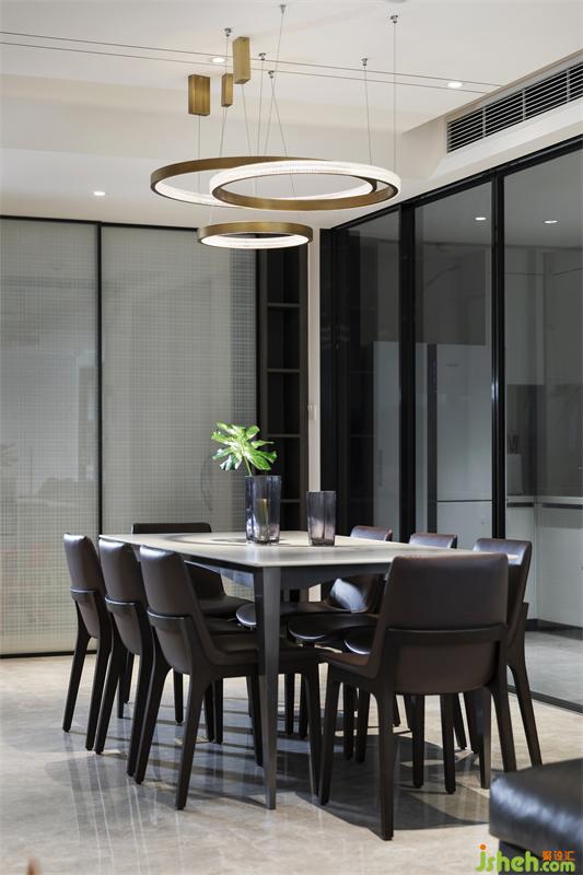 廚房空間與餐廳巧妙融合,四扇暗藏灰波推拉?可以全部隱藏掉,讓廚房立即 變成開放式廚房,并設(shè)置了吧臺增添了生活趣味性,整體極為簡潔優(yōu)雅,無形之中將設(shè)計感融入環(huán)境,成為生活的背景。