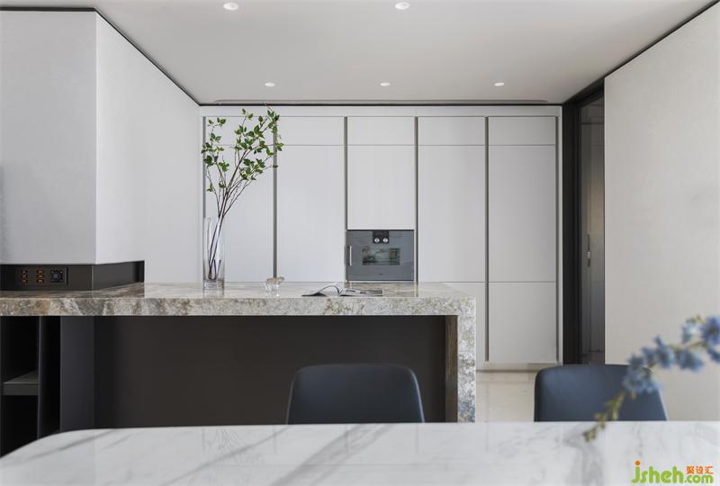 餐廳、廚房相互連貫,以自由為本、自然為質(zhì),私宅設(shè)計采用靜謐優(yōu)雅的設(shè)計格調(diào),營造雅致舒適、隱心于野的氛圍,空間淡泊而寧靜,讓人有種居于山野的自然與安逸。往往是空間與藝術(shù)的完美融合,方可體現(xiàn)當(dāng)下精英生活方式的極致、簡約、前衛(wèi)、藝術(shù)的個性與氣質(zhì)。