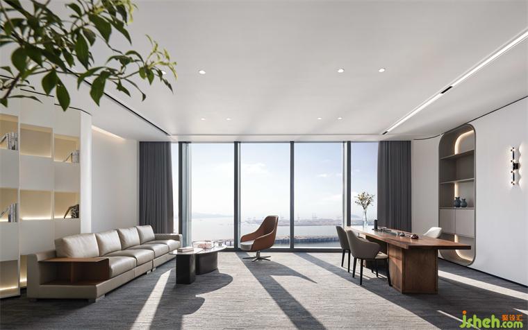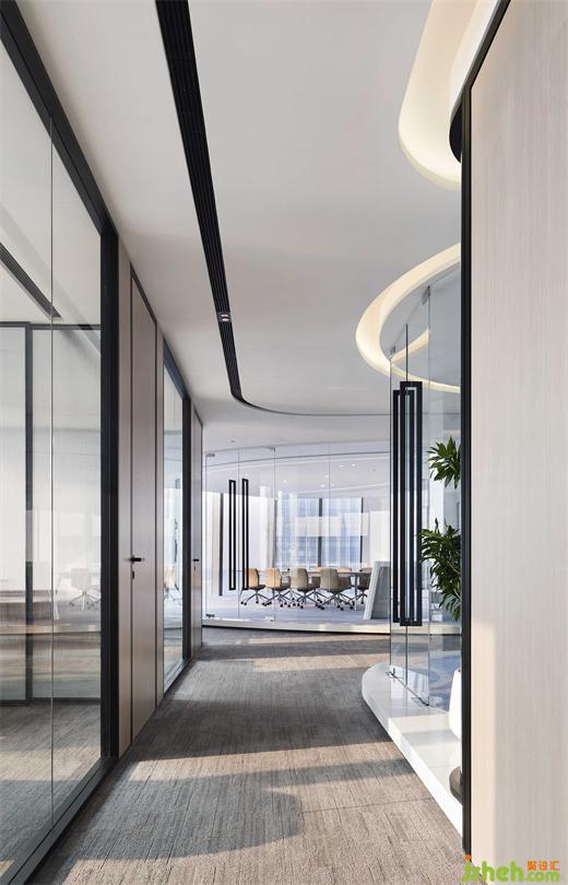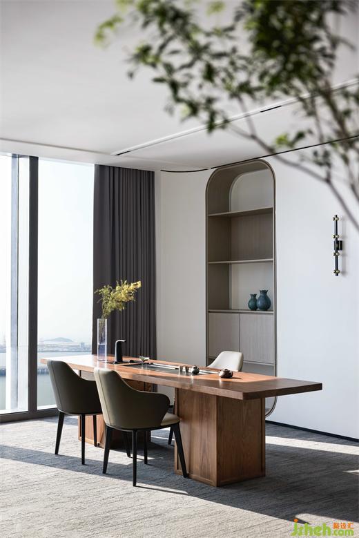 創(chuàng)始人楊總工作之余喜歡博覽群書,設計延續(xù)整體格調(diào)量身定制了一個兼具收納、環(huán)保、審美的大面積墻體書柜,突出明與暗、凹與凸的對比,善擇基金辦公設計流露優(yōu)雅大方的氣質(zhì)。