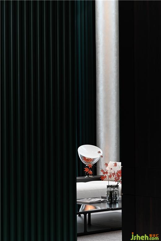 在居室空間中,墨綠色幕墻位于中心,形成視覺焦點。別墅裝修設(shè)計圍繞這堵墻四周分別是客廳、餐廳、廚、樓梯間、健身房,以及方便老人上下樓的電梯間。餐廳處的壁紙來自Cole&Son,畫面選用樹木及灌木叢主題,營造出被包圍的感覺。