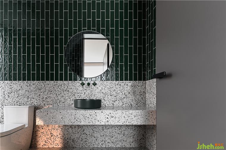 衛(wèi)生間也運(yùn)用了低飽和度的色彩搭配,百葉窗使得空間足夠通透同時(shí)保證足夠的隱私。兒童間的廁所則搭配了湖綠色瓷磚,在某種意義上也是業(yè)主童年回憶的傳承,別墅裝修設(shè)計(jì)以及為下一代創(chuàng)造良好環(huán)境的寄望。
