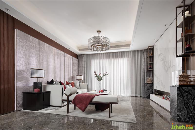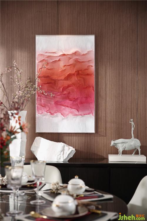 建筑戶型非常的契合潮汕人居習(xí)俗,入戶后客廳大、陽臺大,方正通透。設(shè)計師在一開始客廳的軟硬裝上奠定了整個戶型風(fēng)格的基礎(chǔ),現(xiàn)代的手法與傳統(tǒng)風(fēng)俗文化的演繹。皮雕、山水玉石、扁舟、揭陽樓、舞獅~中式輕奢,新潮汕人家。