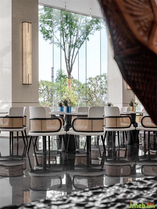 整個(gè)空間與戶外景觀融合,用靜水、倒影與建筑的對(duì)話,招商體驗(yàn)中心設(shè)計(jì)來(lái)呼應(yīng)項(xiàng)目的本身的氣韻利用深邃的暗殊砂紅色新東方藝術(shù)和藤棕天然材質(zhì)點(diǎn)綴其中,強(qiáng)調(diào)連貫性的同時(shí)塑造出更深層次的視覺(jué)體驗(yàn)。