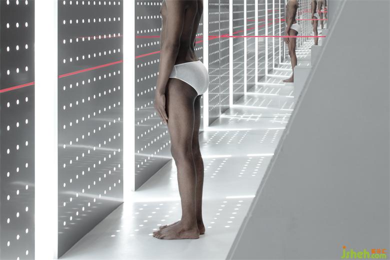 沖孔鋁板的存在建立了更直接的屏障去實(shí)驗(yàn)內(nèi)外的相對(duì)性,同時(shí)它是光影的途徑,展廳設(shè)計(jì)是將陰影的形狀和明暗的交替給直接表達(dá)給我們的載體。