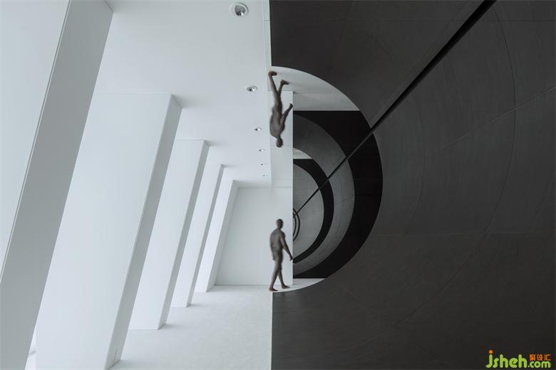 The project is located in an office building. First of all, we want to break the constraints of storey height and area, squeeze and explode the inner shell of the space, and shape the thick space volume with the infinite extension of the axis, so as to bring an impactful vision. The first experience is to eliminate the cramped interior architecture of the office building and its inward property status.