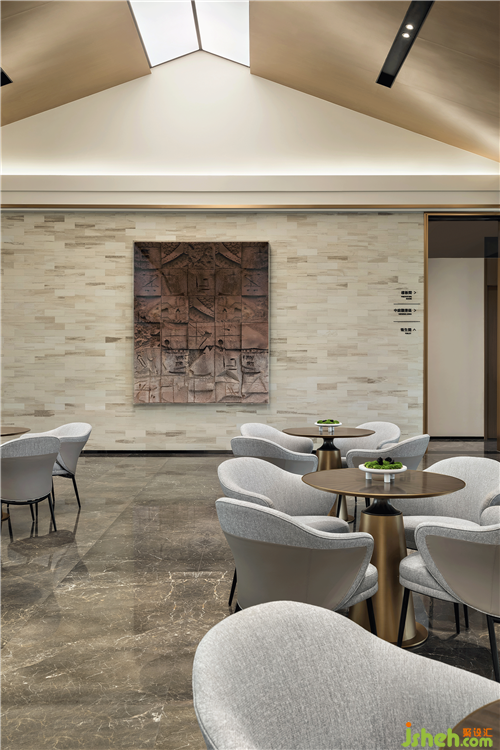 設(shè)計師將人們所熟悉的傳統(tǒng)構(gòu)件加以抽象、裂解和變形,使之融合敦煌巖彩藝術(shù)與燈光,成為象征新與舊、今與古的符號,并在室內(nèi)元素中拼貼運(yùn)用,成為媒介,構(gòu)建起觀者與時空在精神層面上的對話。