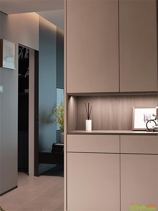 入戶的儀式感,用透景的方式來增加空間的趣味性,深圳紅樹西岸裝修設(shè)計配合比例的控制,若隱若現(xiàn),并且可以使柜體的層次感更明顯。